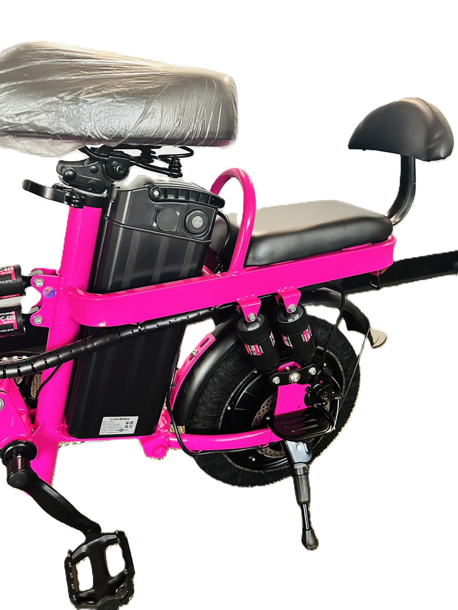 14″ Folding E-Bike w/passenger seat & backrest, A9 – Pink